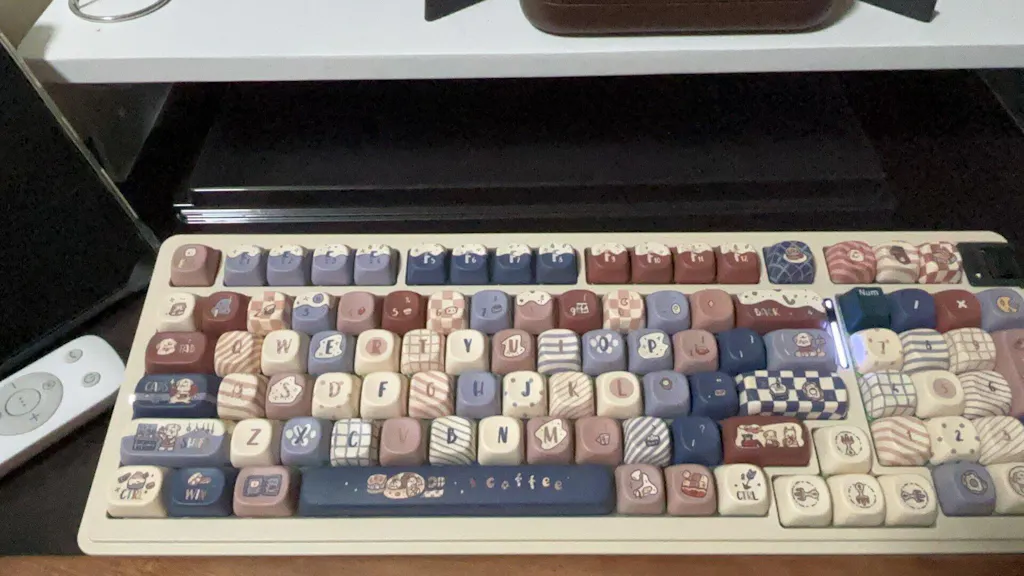 K98v2 was upgraded with a new color-Glacier Blue, 4 colors available to total. The white wireless keyboard, or pink wireless keyboard can also match well with other keycap sets, not to mention cream gray gasket mount keyboard.