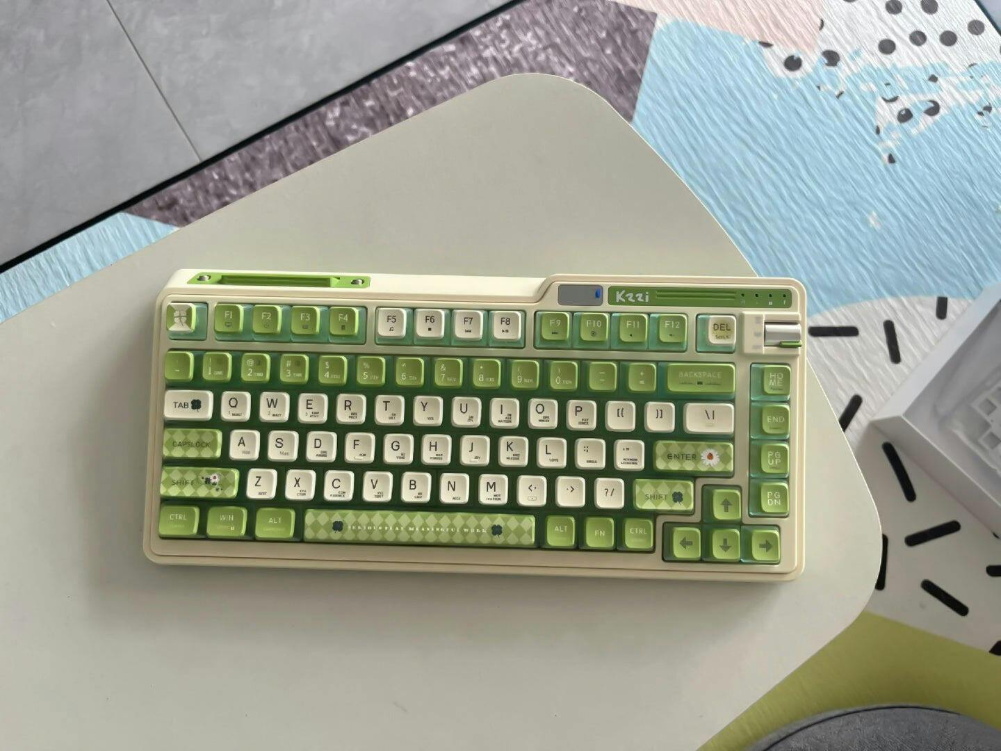 The tiny screen is used to show the battery level, so that we do not need to worry about the working length of the wireless mechanical keyboard. There is no more complicate factors on the screen. Unlike the Z98 keyboard with screen, the screen is more functional. With this screen, users can have a more intuitive and convenient experience while using the K75 mechanical keyboard.